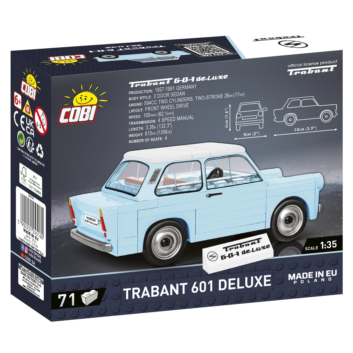 Build a piece of history with the Trabant 601 in 1:35 scale! This COBI set captures the unmistakable shape of the iconic East German car with 71 precision-crafted bricks, now in a stunning light blue, even closer to the original.