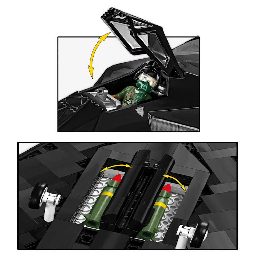 The COBI Lockheed F-117 Nighthawk brings one of the most iconic and mysterious aircraft in modern aviation to your display shelf: the world’s first operational stealth attack aircraft. Officially licensed by Lockheed Martin, this 1:48 scale model captures the angular silhouette of the “invisible” jet in a brick-built version designed for both building enjoyment and serious display.