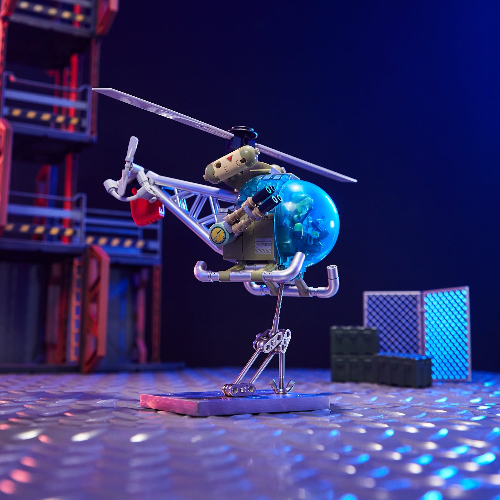 Fans of the hit SNK video game Metal Slug 3 will love this Pantasy Helicopter building model. It faithfully recreates the "Slug Copter" vehicle from the game, complete with two Vulcan cannons, a bomb, and a minifigure of Eri Kasamoto.