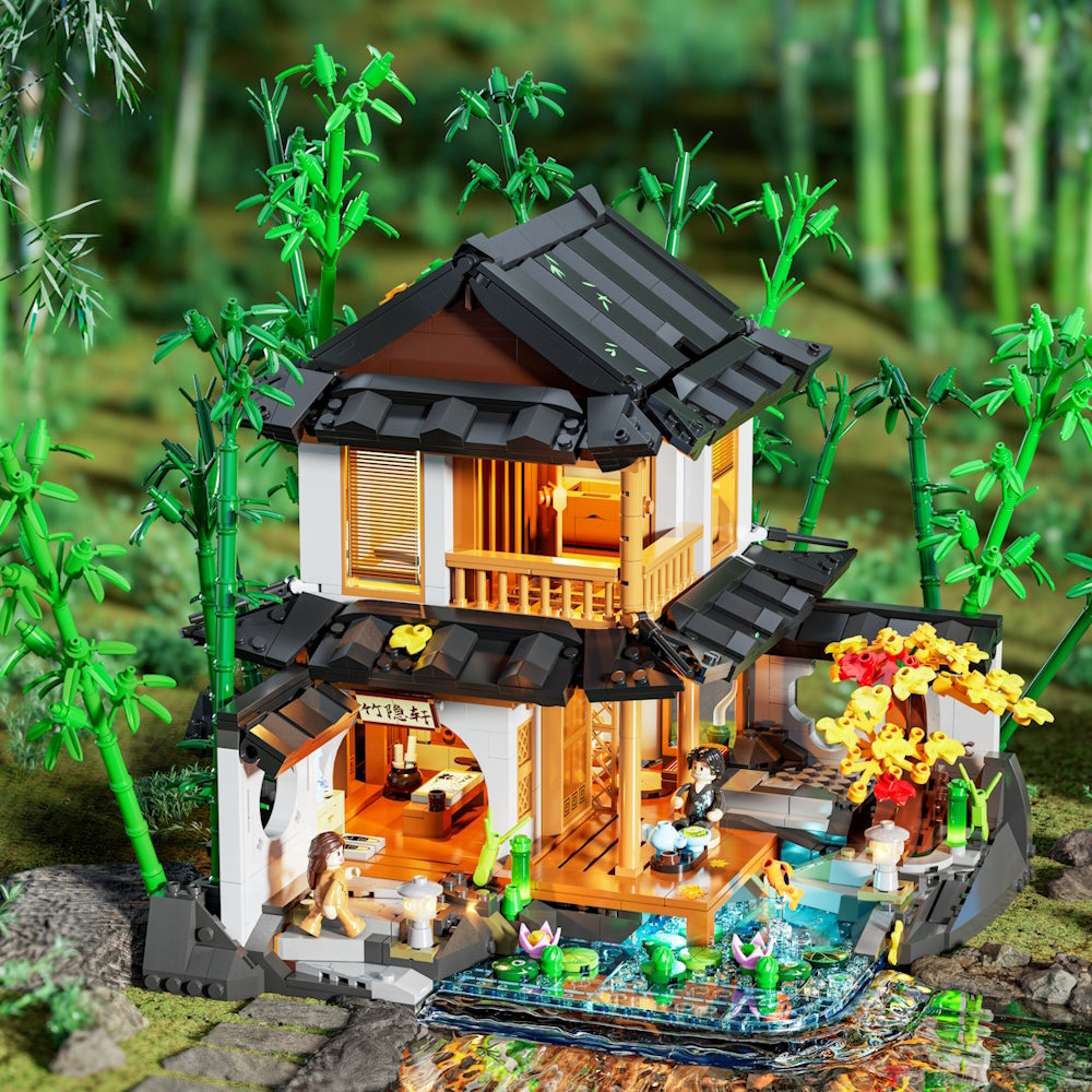 Explora cada planta con facilidad gracias a su diseño modular desmontable. En el interior encontrarás una gran riqueza de detalles culturales: una zona para degustar té, áreas para tocar el guzheng (cítara) y practicar pintura con tinta, e incluso un compartimento secreto oculto tras un mueble —¡con partes intercambiables para las minifiguras!