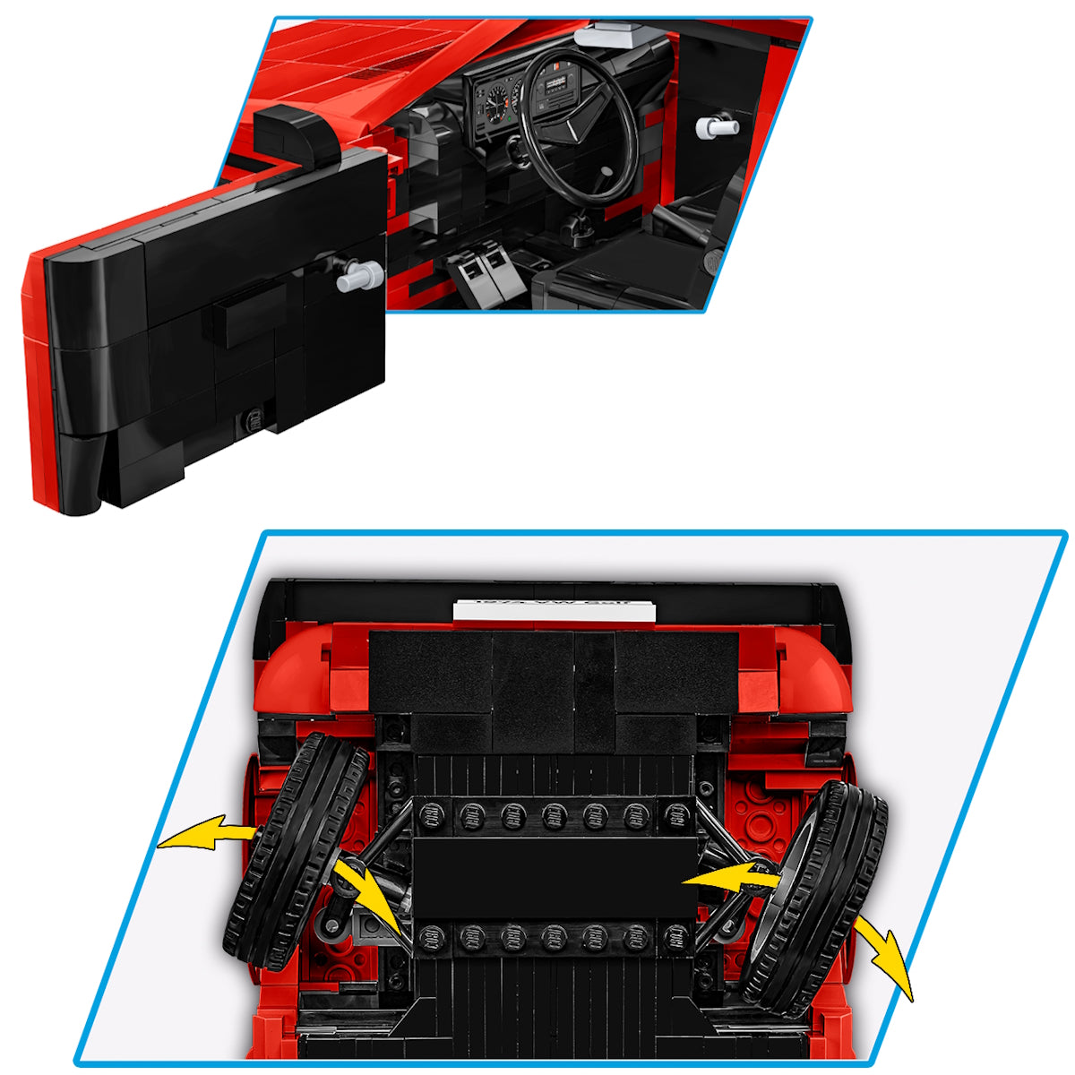 Con 1.533 piezas diseñadas con precisión, cada detalle ha sido cuidadosamente recreado: puertas y maletero abatibles, un motor desmontable, un interior detallado, volante funcional y neumáticos de goma realistas. Todo para una experiencia de construcción auténtica.