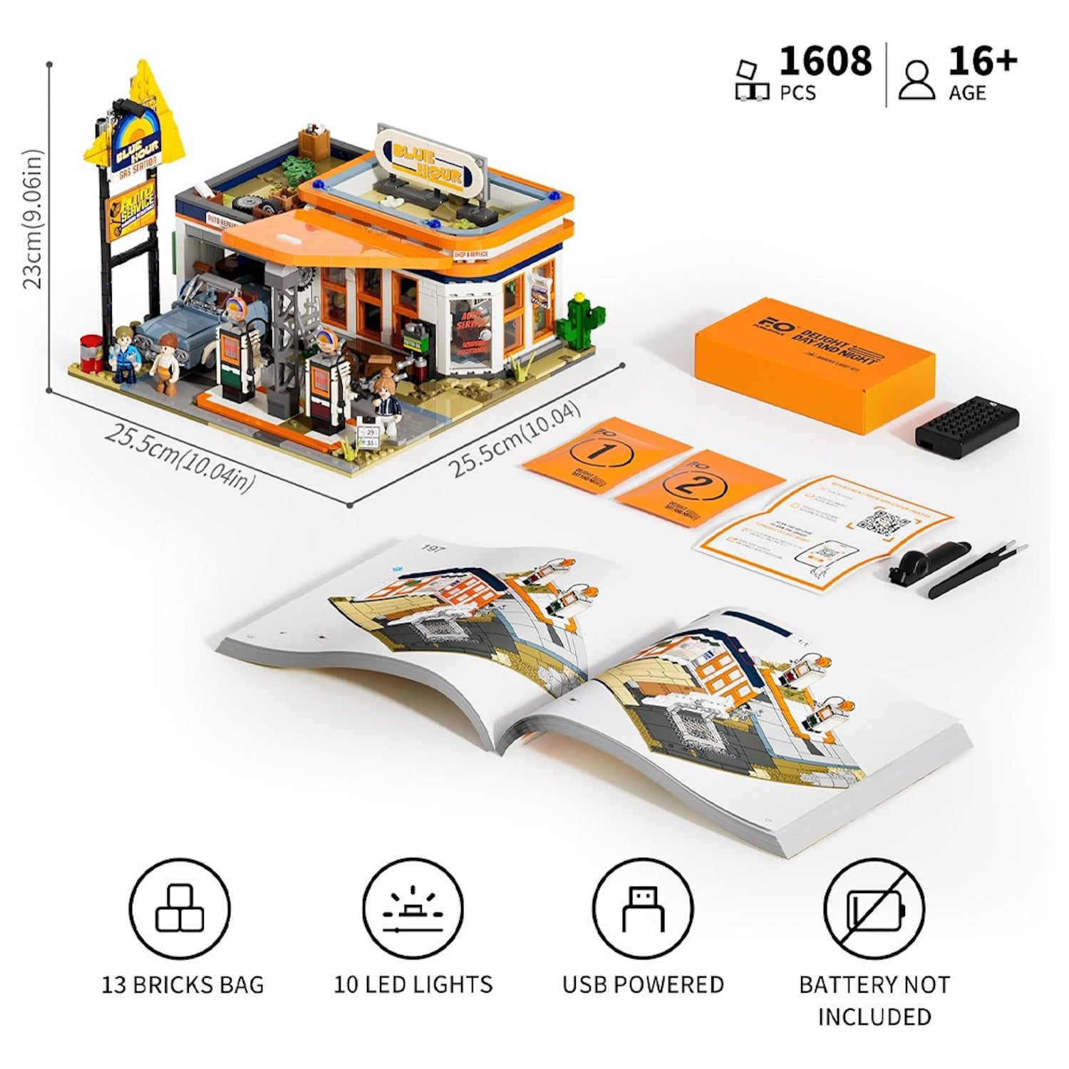Haz una parada en la historia con la Gasolinera de Funwhole, un set de construcción inspirado en las estaciones de servicio clásicas de los años 60. Con 1.608 piezas, 10 puntos de luz LED y detalles arquitectónicos icónicos, este modelo recrea a la perfección la nostalgia de los viajes por carretera en la América clásica.